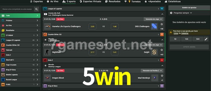 A aposta 5win oferece aos jogadores a experiência mais conveniente de apostas em eSports!